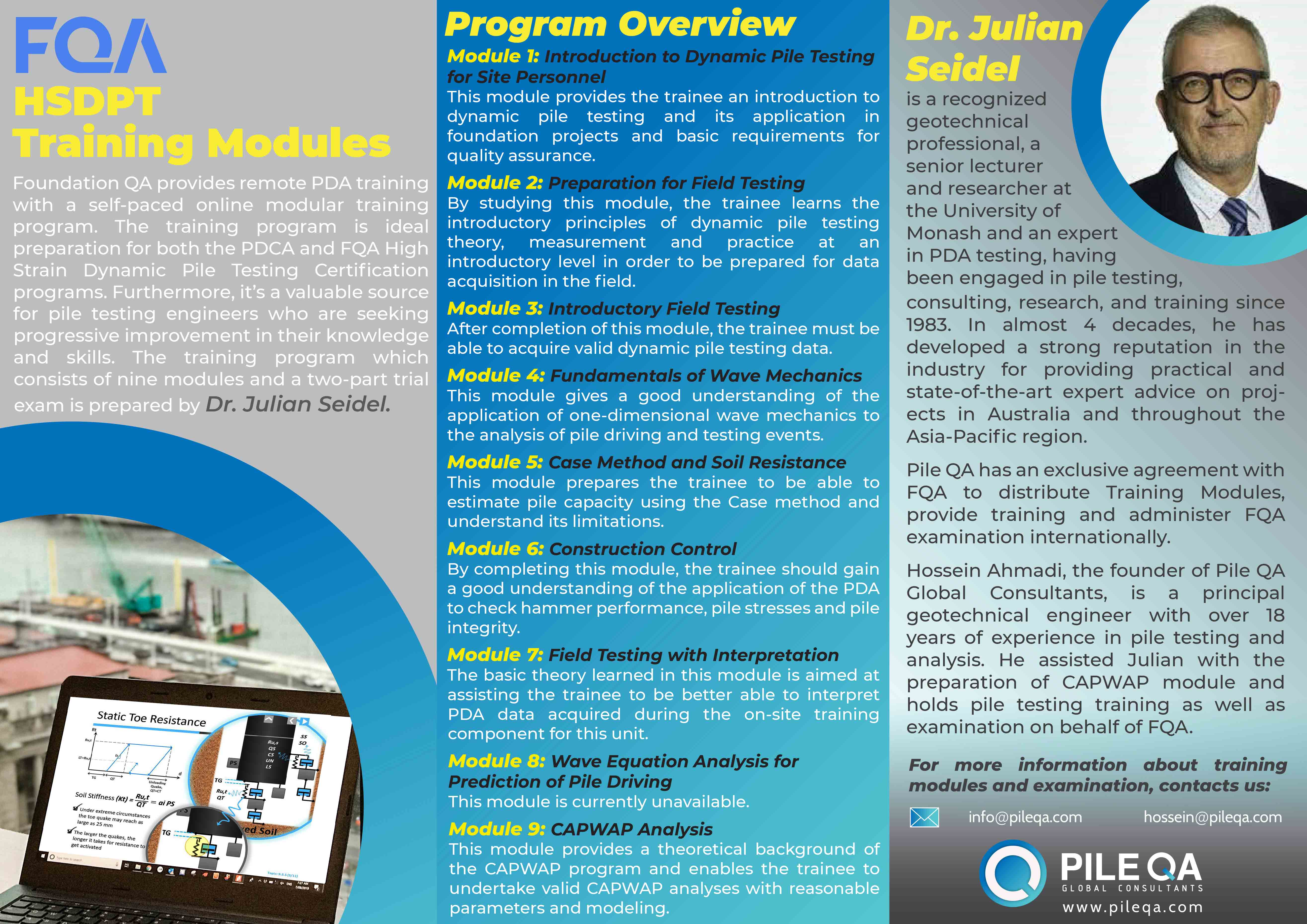 By studying this module, the trainee learns the introductory principles of dynamic pile testing theory, measurement and practice at an introductory level in order to be prepared for data acquisition in the field.